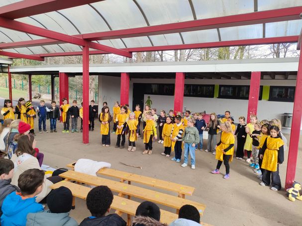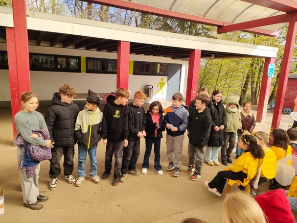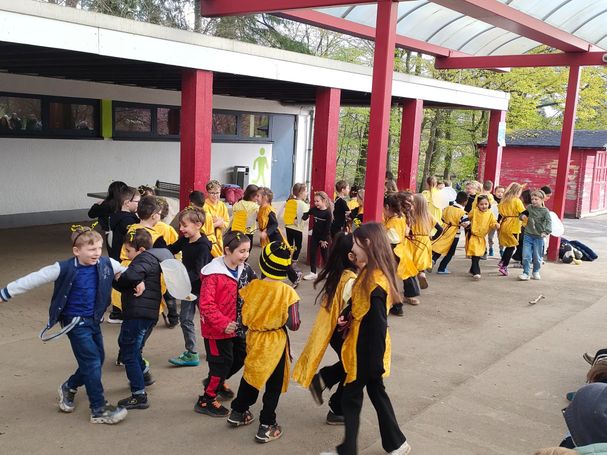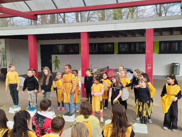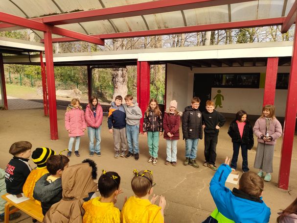 Nach langer Pause konnten wir endlich wieder den Frühling herbeisingen. Die ersten Schuljahre haben ein kleines Musical vorbereitet und aufgeführt. Zusammen mit den anderen Klassen wurden noch gemeinsame Frühlingslieder gesungen. Das Wetter war zwar nicht sehr frühlingshaft aber alle haben sich sehr gefreut, endlich wieder zusammen den Frühling und die Ferien begrüßen zu dürfen. :-)