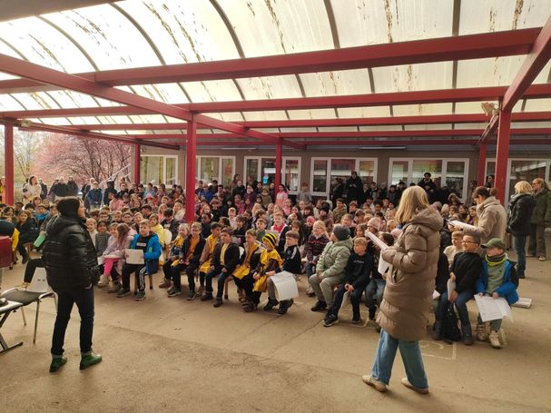 Am letzten Schultag vor den Osterferien trafen sich alle Schülerinnen und Schüler in der Turnhalle zum Frühlingssingen. Unsere ersten Schuljahre führten ein tolles Musical auf! Anschließend stimmten alle gemeinsam Lieder an um den Frühling herbei zu singen.